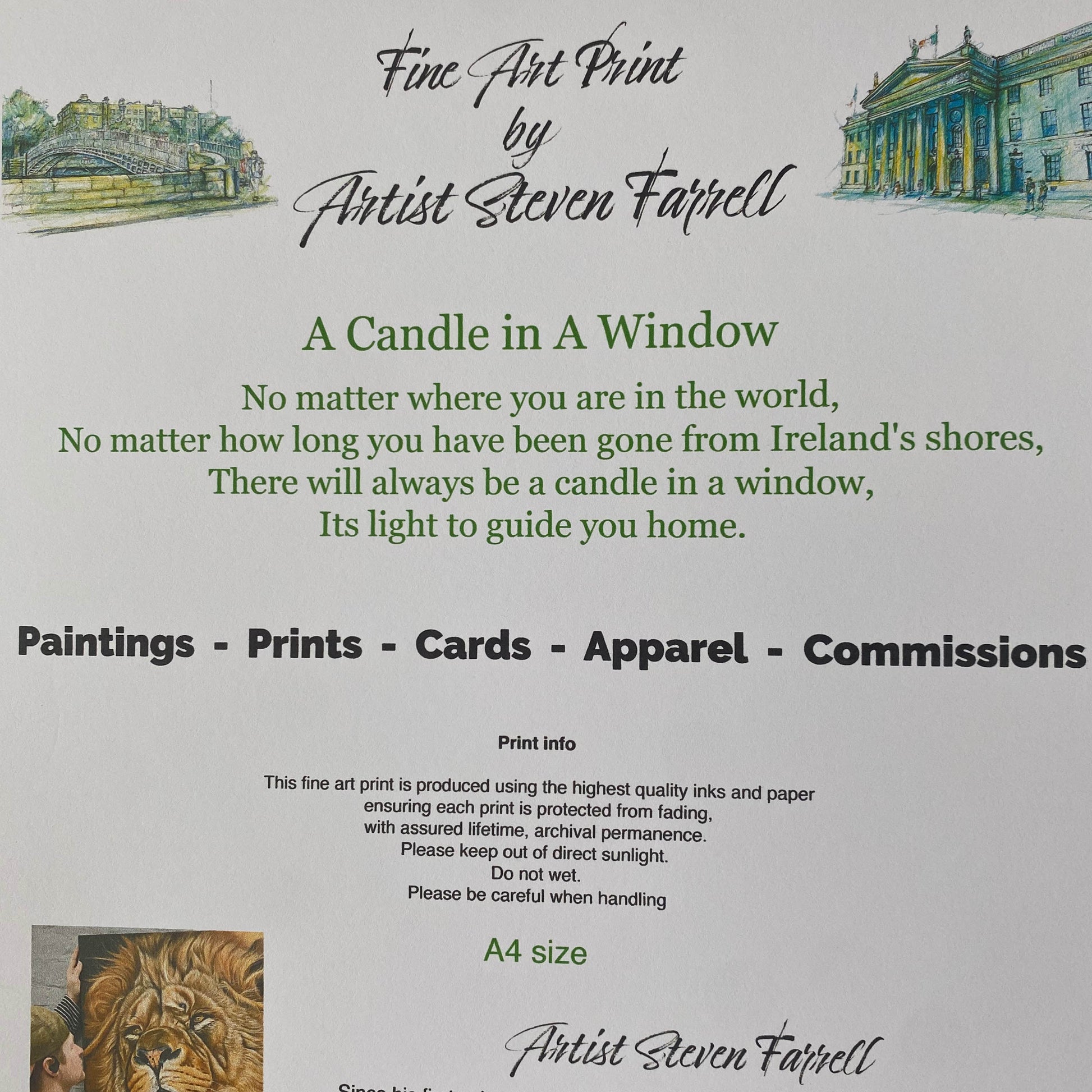 This fine art print is part of a collection called 'A Candle in a Window' after the tradition of the Irish President, who keeps a candle continuously lighting in the window of the Áras an Uachtaráin (home of the Irish President):